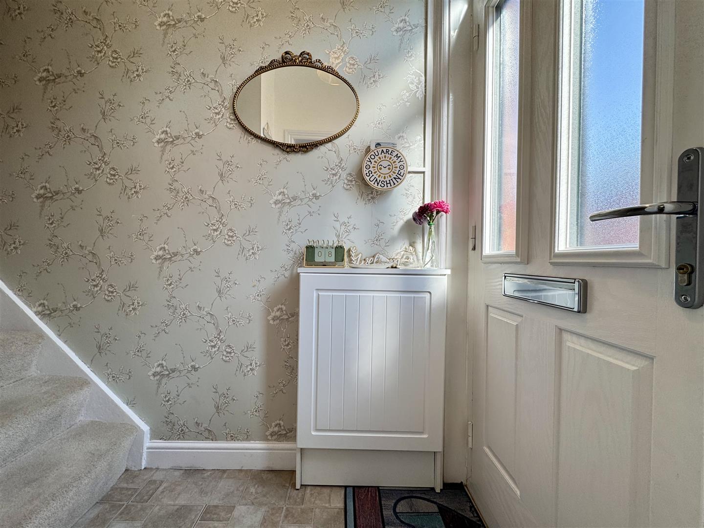 You enter the property through a part glazed uPVC door into an entrance hall where there is space to remove coats and shoes, a staircase ascends to the first floor landing and there is tile effect flooring underfoot. A door leads to the lounge.