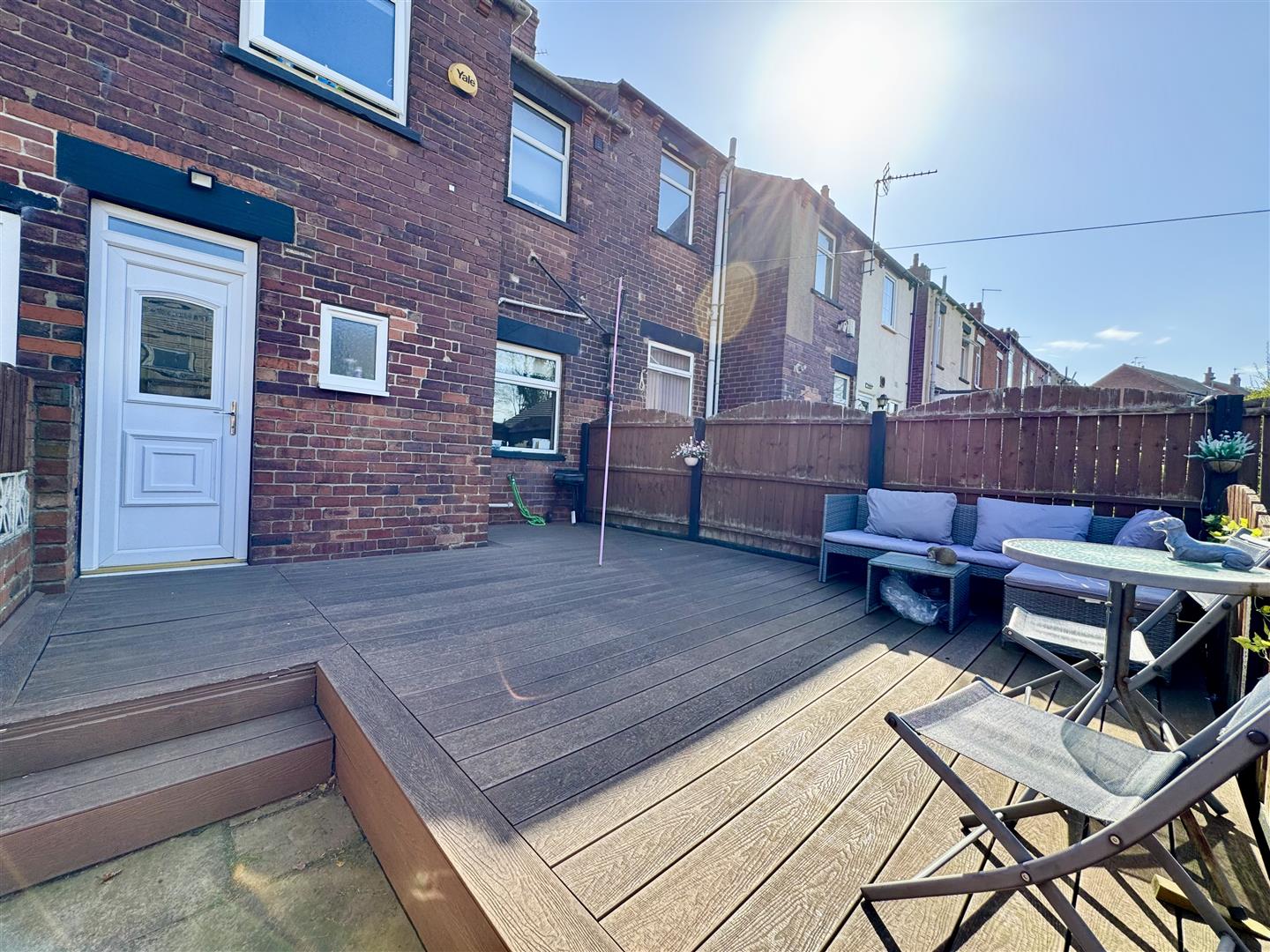 This is a wonderful feature of the property, a long landscaped fully enclosed garden. Adjoining the house is a decked area which is enclosed by fencing and a gate. Beyond this is a lawn with a flagged path which leads down to a patio. This provides multiple areas for outdoor furniture and could also be a lovely place to potter for any keen gardener.