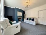 This well proportioned lounge has ample space to house a range of freestanding furniture, including alcoves either side of the chimney breast, which is home to an electric stove with timber surround. There are lovely character features including a ceiling rose and coving, stylish decor, a front facing window which lets natural light flood in, and doors lead to the entrance hall and dining kitchen.