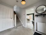 You enter the property through a part glazed composite door into a lovely welcoming hallway. A carpeted staircase with a white painted balustrade ascends to the first floor. A cupboard allows storage for shoes. Doors lead to the downstairs W.C., lounge and dining kitchen.