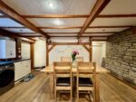 Located on the lower floor, this impressive dining kitchen is full of character having an exposed stone wall, beams and spotlighting to the ceiling, timber flooring underfoot and mullion windows overlooking the garden. The kitchen is fitted with a range of cream wall and base units, contrasting work surfaces, tile splashbacks and a stainless steel sink and drainer with mixer tap over. Integrated appliances include a four ring gas hob with concealed extractor above and an electric oven. There is space for a freestanding fridge freezer, plumbing for a washing machine and for a dishwasher. There is ample room for a dining table and chairs. A door opens to the store room, an external door opens to the garden and a staircase ascends to the living room.