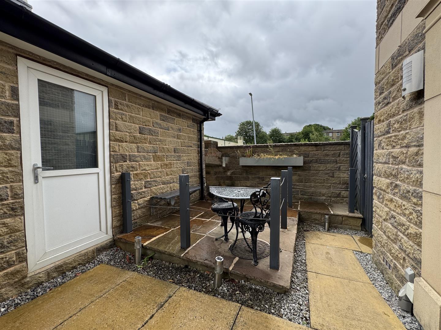 The property sits within a small quiet courtyard area and benefits from a detached garage which has an up and over door, light and power and a side door for access. Tucked round the corner is a small patio seating area and in front of the garage is a parking space for one vehicle.