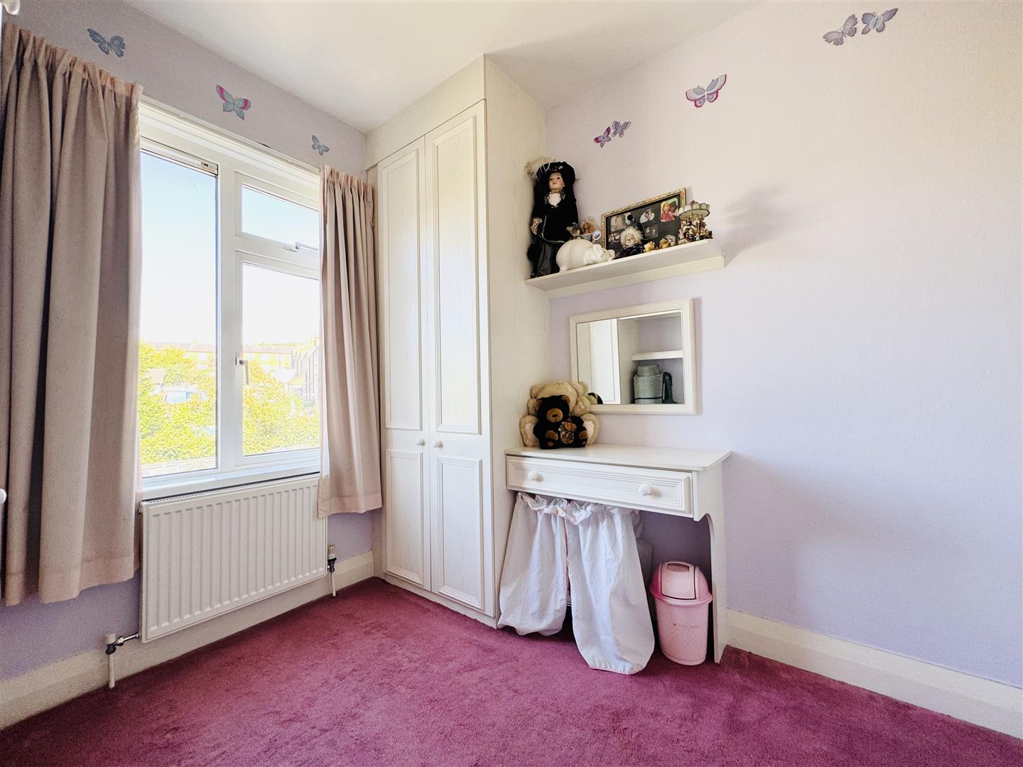 This good sized third bedroom can be found towards the rear of the property with a window overlooking the garden. It has been fitted with a range of bedroom furniture, including wardrobes, high-level cupboards and dressing table with space for a single bed. Door leads to the landing.