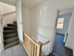 Stairs ascend from the inner lobby to this first floor landing with carpet flooring, a modern low energy ceiling light with internal doors leading to the two bedrooms on this floor, the bathroom and the staircase to the second floor.
