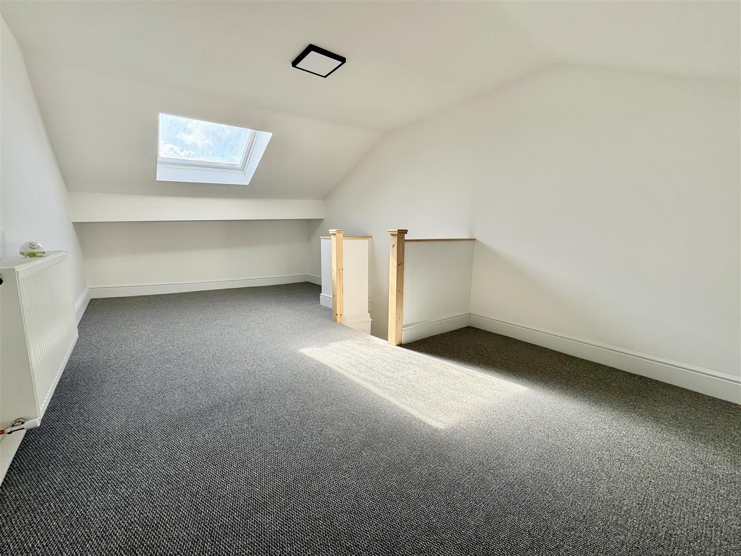 Impressive second floor bedroom having carpet flooring, a wall mounted double radiator and double glazed Velux window. There is lots of space for one or two bed plus bedroom furniture and a modern, low energy ceiling light.