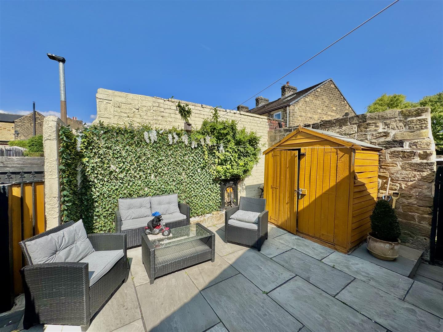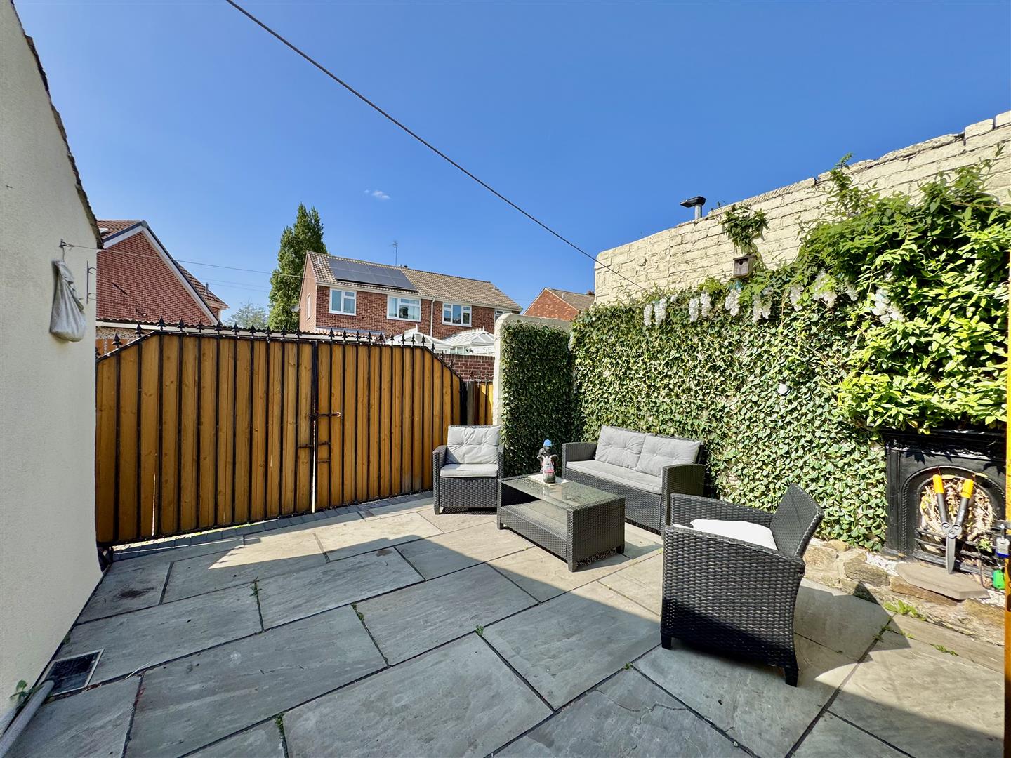 Useful extra space which has multiple uses including parking with the double gates at the side giving vehicular access. This lovely enclosed space also has room for seating, a garden shed and access to the front via the locked ginnel.