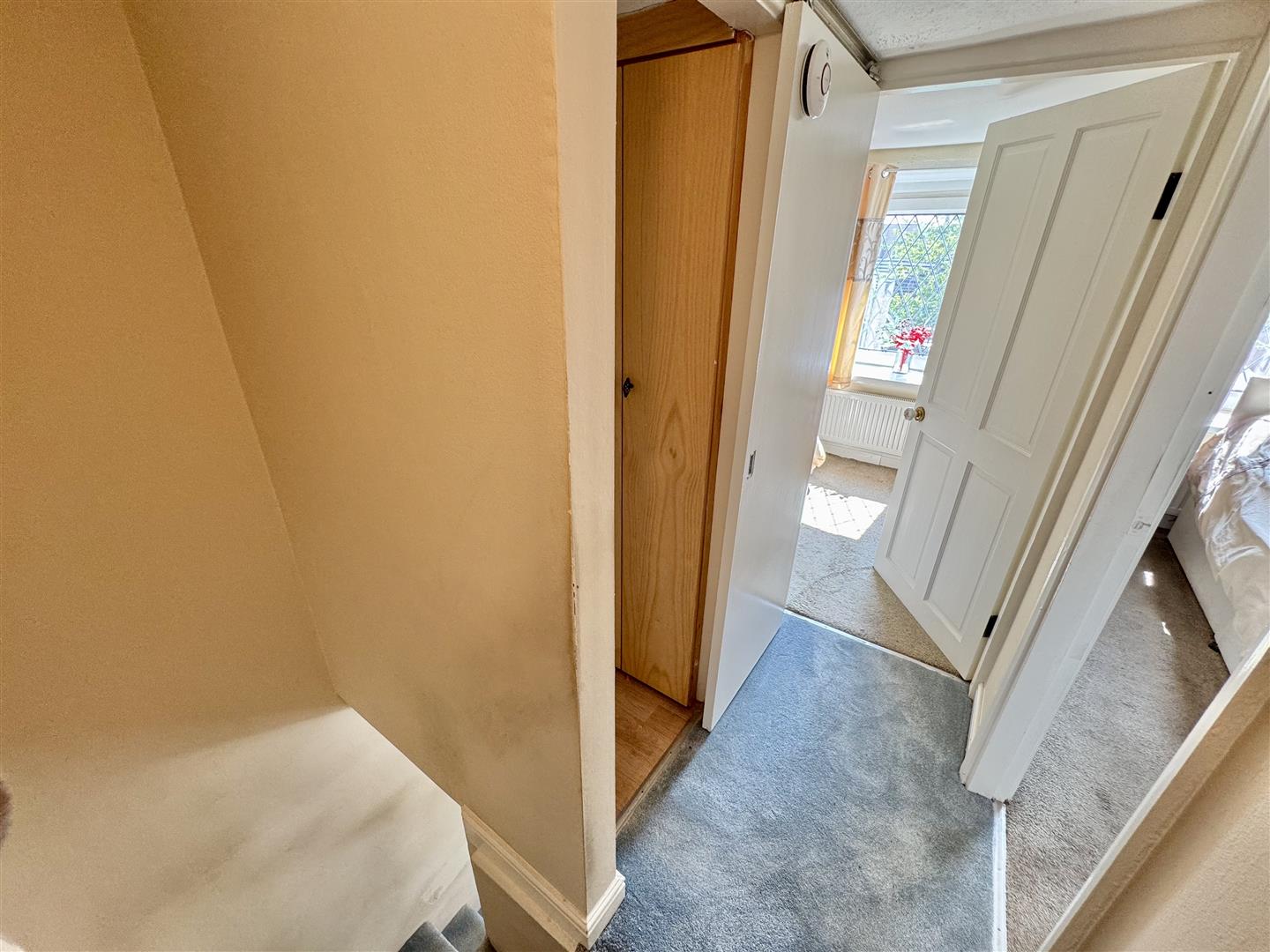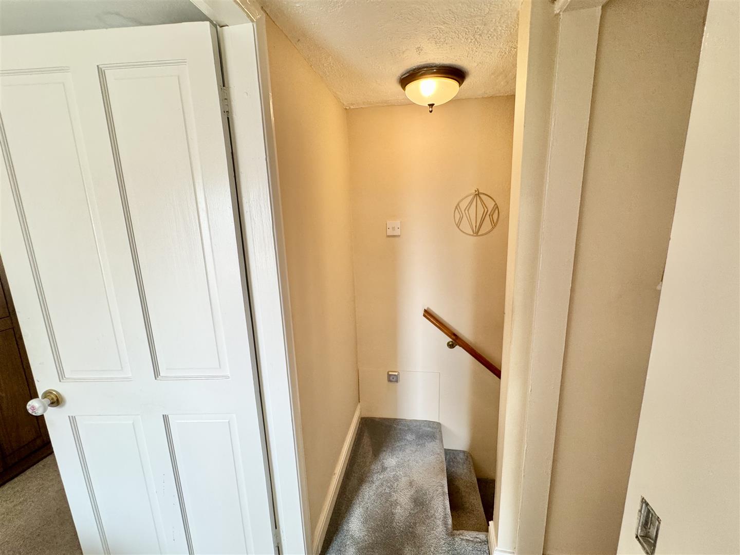 Stairs ascend from the rear of the lounge to this first floor landing having carpet flooring and internal doors lead to the bathroom and both bedrooms.