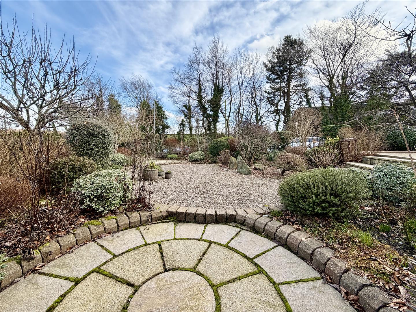 A double gated entrance leads to a substantial block paved driveway providing multi vehicle parking having landscaped gardens including lawn to the front with well stocked borders, raised patio leading to front entrance door, a sizeable side garden including attractive decorative paving, gravelled areas with mature planting and hedges and side path giving access to the rear.