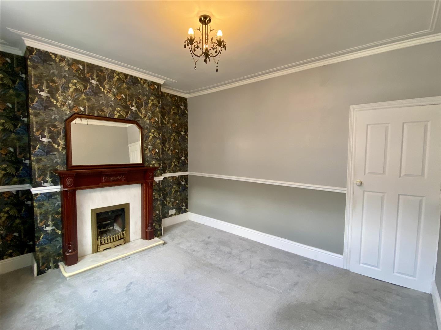Positioned to the front of the property is this generous sized living room offering plenty of floor space for freestanding furniture. A front facing window fills the room with lots of natural light, there is chunky coving to the ceiling, dado to the walls and a carpet underfoot. A door leads through to the inner hallway hallway.