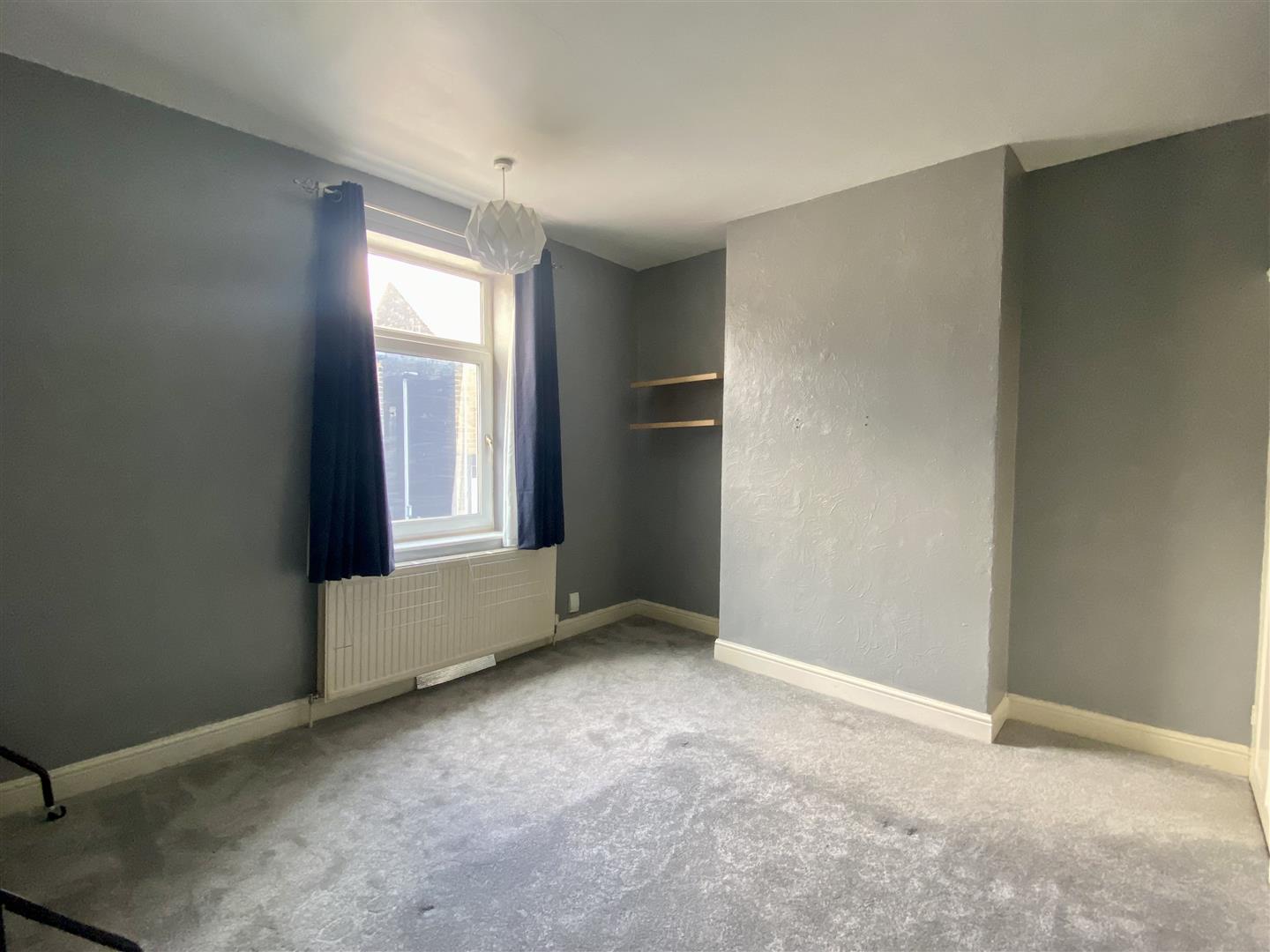 Positioned to the rear of the property is this lovely second bedroom which will accommodate a small double bed. There is a central pendant light fitting, stylish décor to the walls and carpet underfoot. A rear facing window has a pleasant outlook across the garden and a sliding door leads through to the landing.