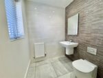 Surprisingly sizeable cloakroom comprising a twin flush close coupled WC, wall mounted wash basin with mixer tap, tiling to the floor, a wall mounted radiator and a front facing double glazed window with obscure glass. There are inset ceiling spotlights, an extractor fan and full height tiling to two walls. An internal door leads to the hallway.