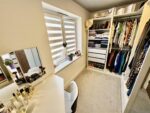 A well proportioned en suite with a three piece suite in white consisting of a concealed flush WC, a vanity wash basin with wall mounted taps, double shower enclosure with thermostatic shower having overhead shower head and separate hose. There is full height tiling to two walls plus the shower, tiling to the floor, underfloor heating, extractor fan and a side facing double glazed window with obscure glass. There is a chrome ladder towel radiator, inset ceiling spotlights and built in cupboard. An internal door leads to the bedroom.