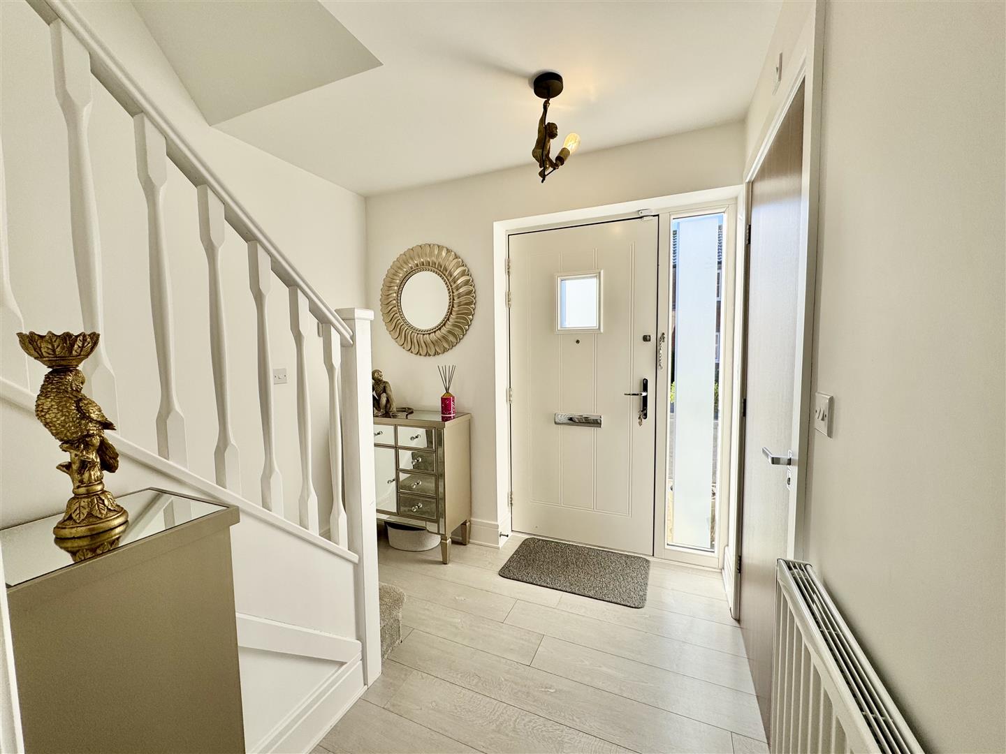 You enter the property through a composite front door into this spacious area with plenty of room to remove shoes and coats. There is ample natural light via the double glazed panel to the side of the door with obscure glass. There is a wall mounted radiator, pendant lighting and internal doors to the ground floor WC and open plan living area. A staircase leads to the first floor landing.