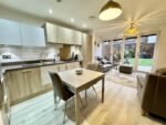 Upon entering, you are greeted by a spacious hall giving access to the stylish open-plan living area that seamlessly connects to the outdoors through stunning bi-fold doors. This design not only enhances the natural light but also creates a perfect space for entertaining or simply enjoying the serene views of the exceptional south-facing garden. The garden boasts a well-maintained artificial lawn, a patio area for al fresco dining, and a handy shed for additional storage.
