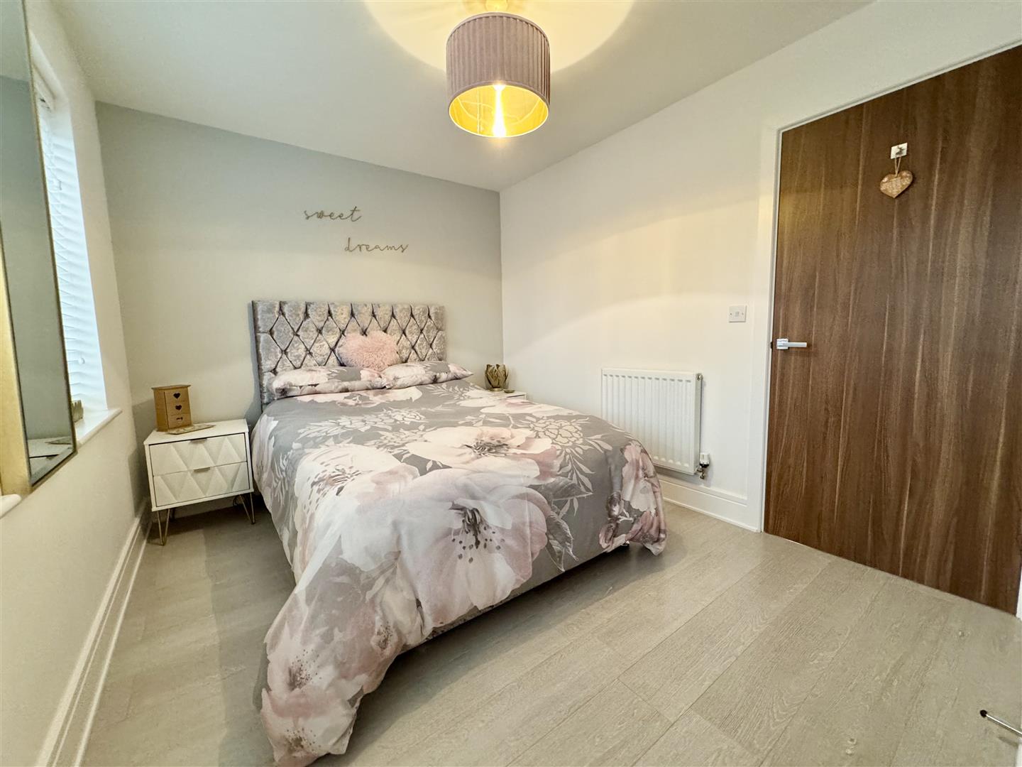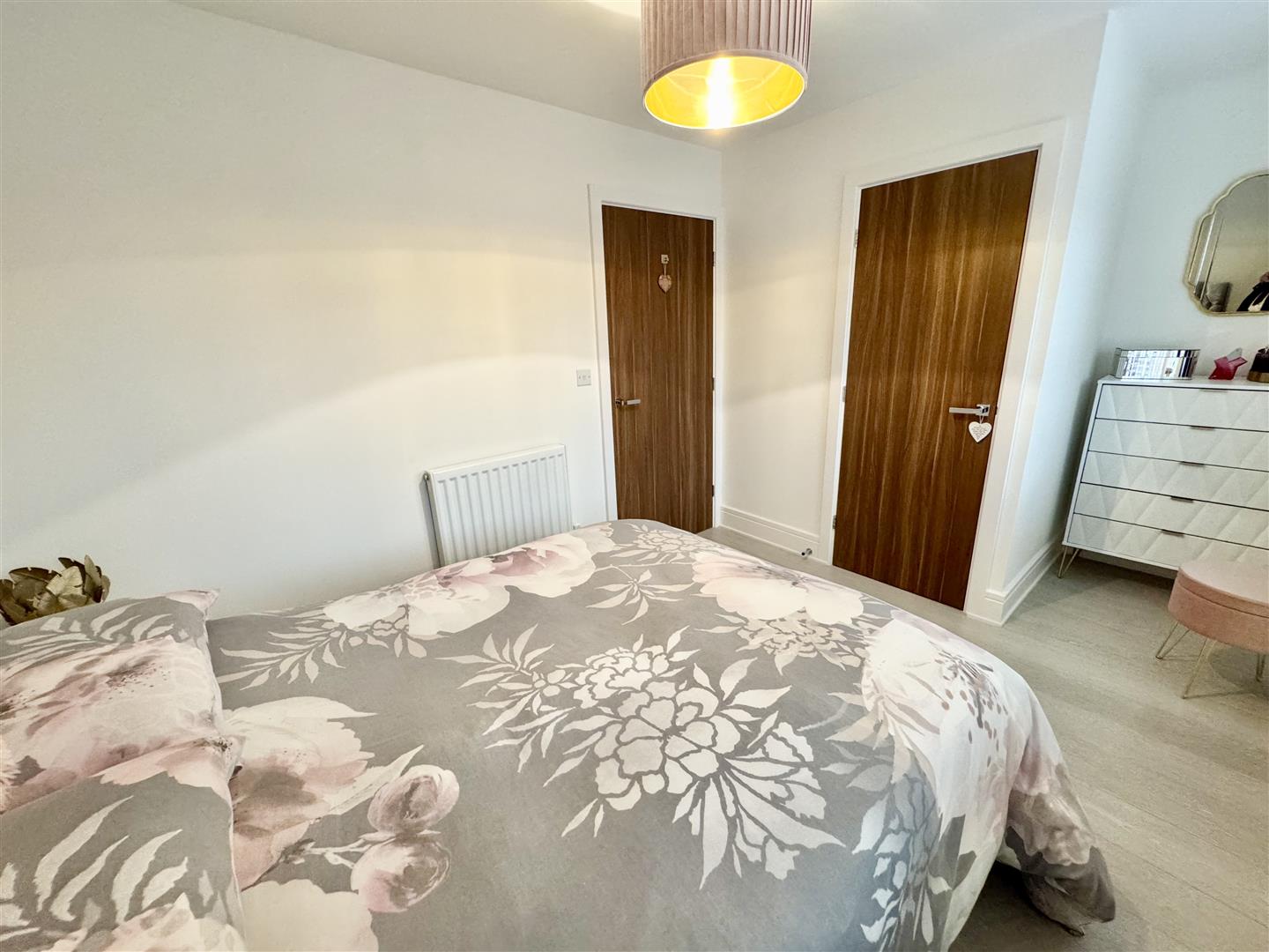 A good size double bedroom, situated at the rear of the property with two double glazed windows giving views of the garden and bringing in plenty of natural light. There is an excellent range of fitted wardrobes having sliding doors, laminate flooring and a wall mounted radiator. There is pendant ceiling lighting and an internal door leads to the landing