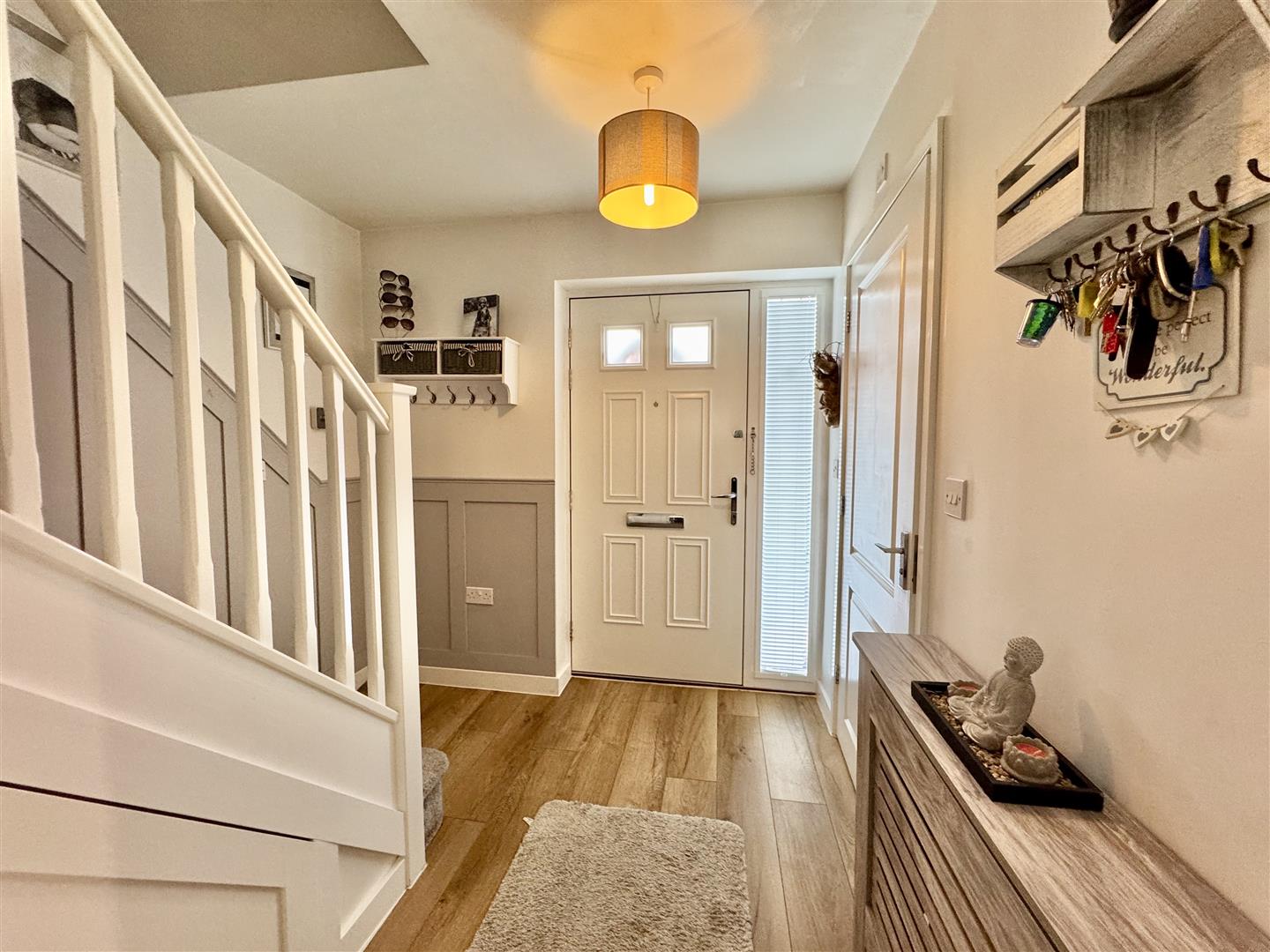You enter the property through a composite front door into this spacious area with plenty of room to remove shoes and coats. There is ample natural light via the double glazed panel to the side of the door with obscure glass and the panelled wall to dado height leads up the staircase and gives that feeling of luxury. There is a wall mounted radiator, pendant lighting and internal doors to the ground floor WC and open plan living area. A staircase leads to the first floor landing.