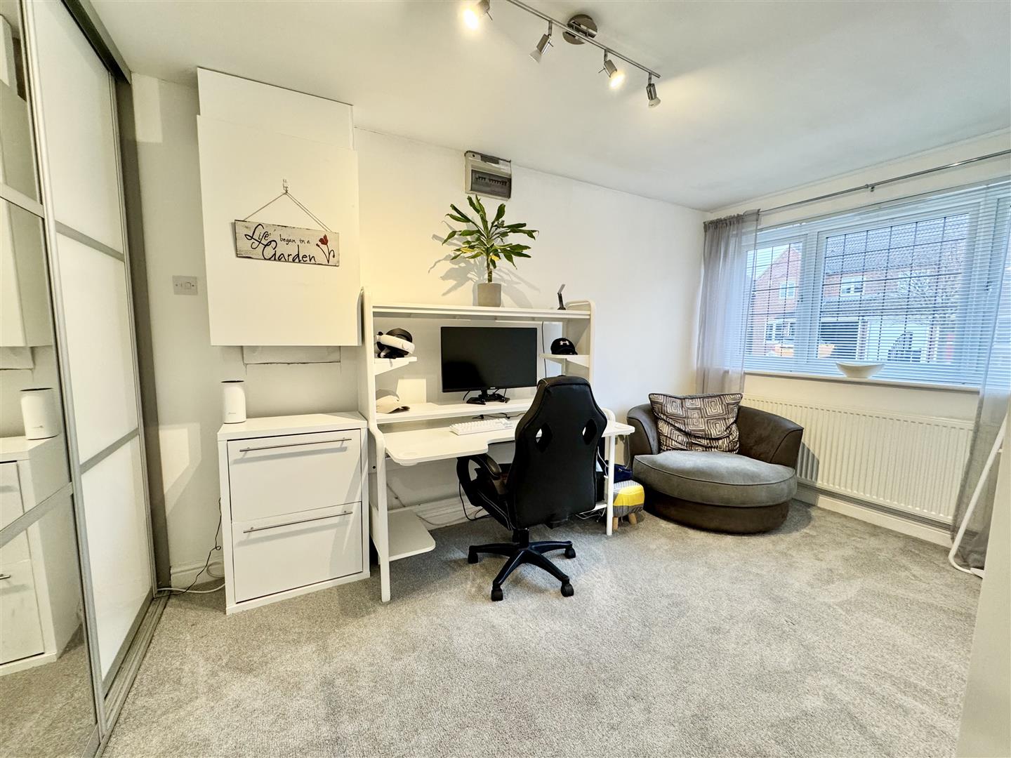Fantastic use of this garage conversion, with multiple options including providing the property an extra bedroom, on the ground floor, perfect for any guests with mobility problems, with the added benefit of the wet room, also on the ground floor, this space adds real appeal and potential. There is a fitted triple wardrobe with sliding doors, carpet flooring, a wall mounted radiator with natural light drawn in via the double glazed window to the front. The boiler is located in a cupboard in this room and an internal door leads to the hall.
