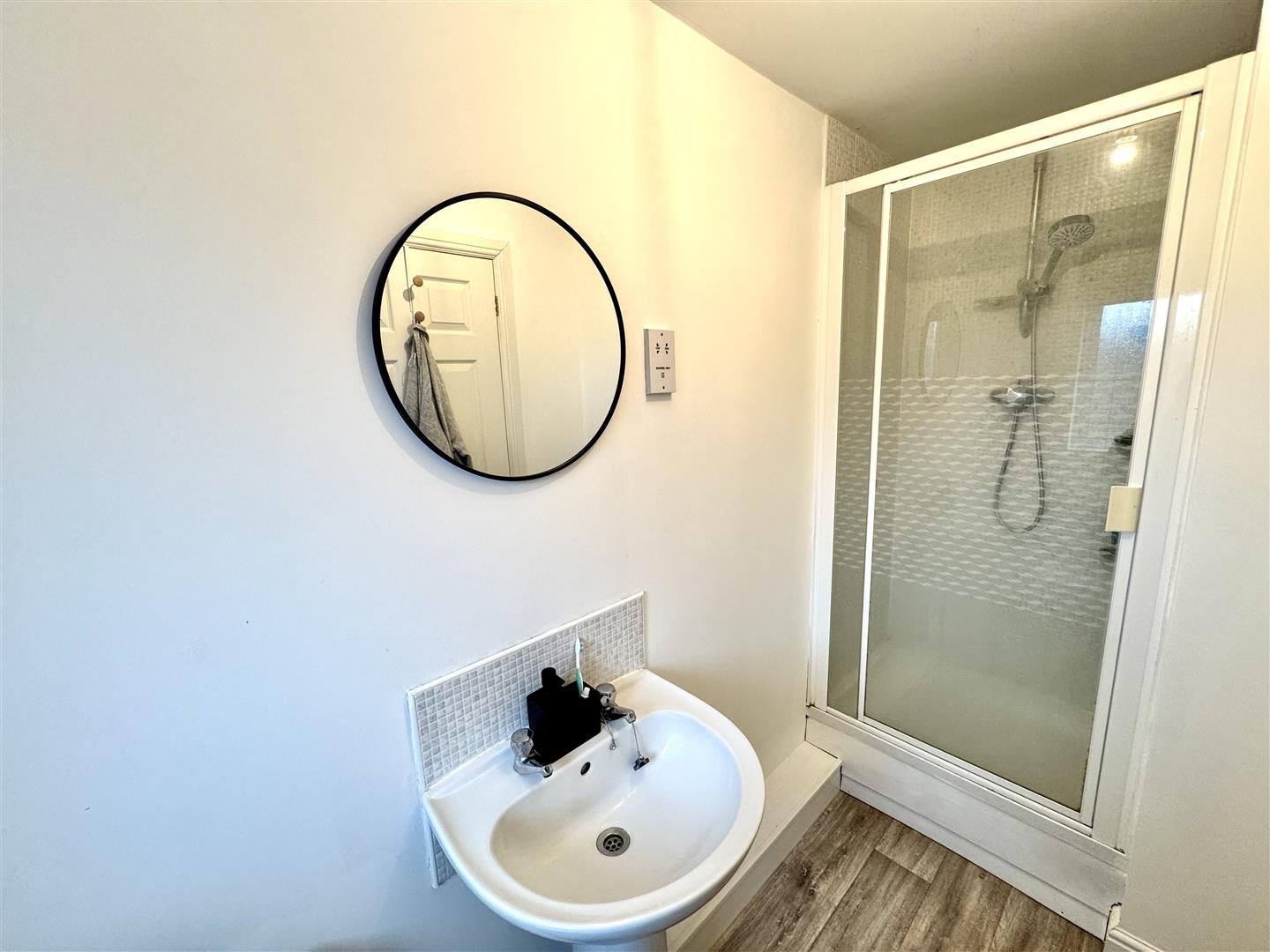 Having a three piece suite consisting of a tiled shower enclosure with thermostatic shower, pedestal wash basin and twin flush low level WC. There is vinyl flooring, a wall mounted radiator, ceiling light and a double glazed window with obscure glass brings in natural light. There is a shaver socket, extractor fan and an internal door leads to the bedroom.