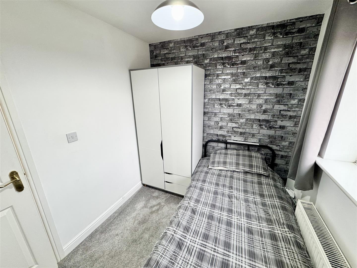Forth bedroom,again located at the front with the double glazed window bringing in natural light. There is space for freestanding bedroom furniture, carpet flooring, pendant ceiling lighting and a wall mounted radiator. An internal door leads to the landing.