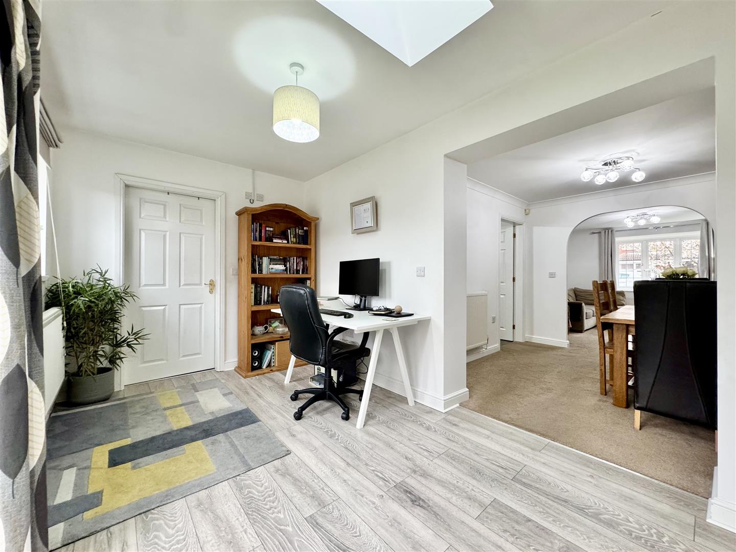 This superb extended space has multi function use and, with it being adjacent to the wet room, could be closed off and used as an additional ground floor bedroom, having French doors giving access to the out side which also brings in natural light. There is laminate flooring, a wall mounted radiator and natural light is augmented by the Velux ceiling window. An internal door leads to the wet room and an open doorway to the dining room.