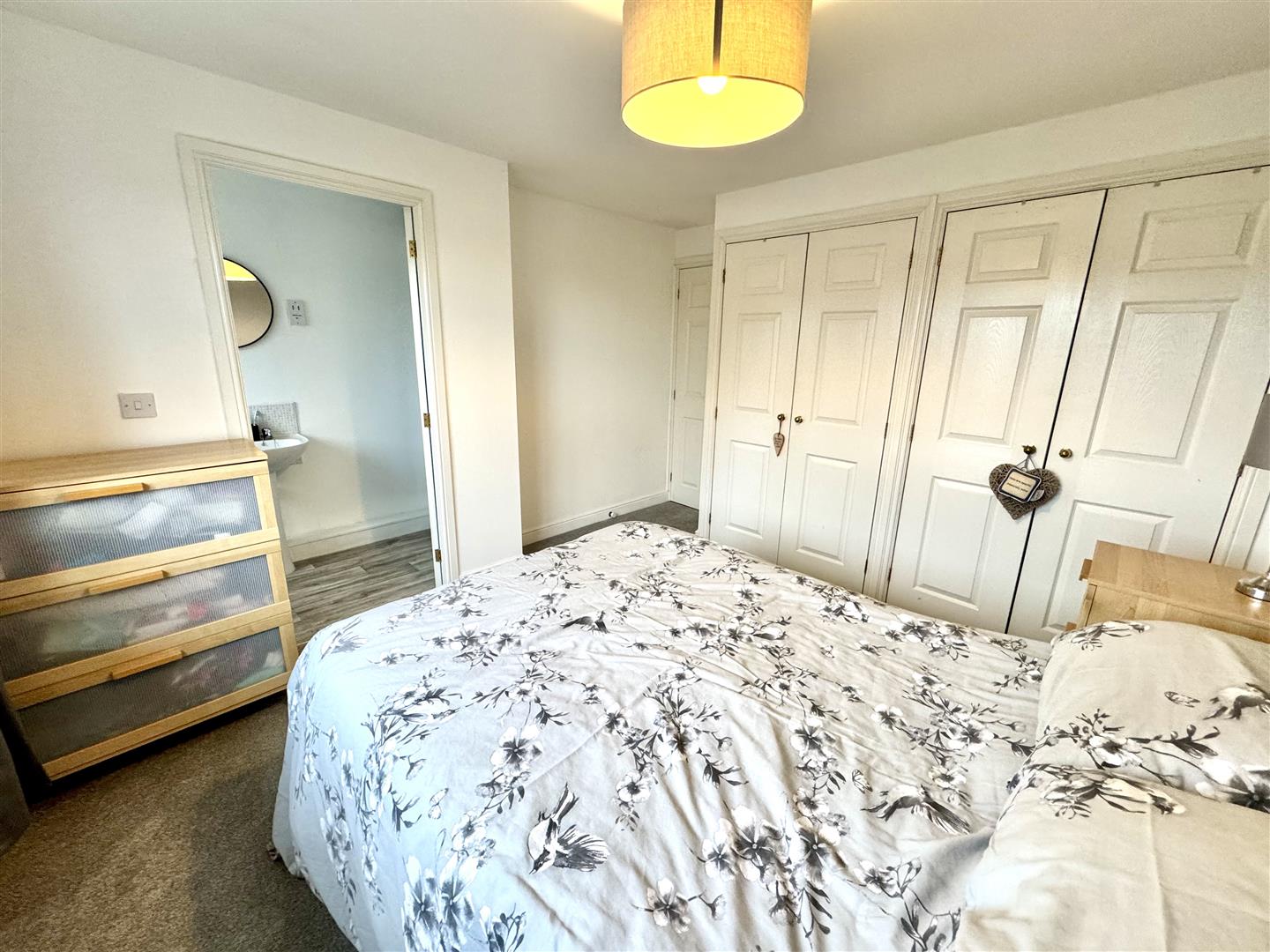 Generous main bedroom having excellent storage via the two built in double wardrobes. A double glazed window overlooks the rear garden, there is carpet flooring, a wall mounted radiator and pendant ceiling lighting. Internal doors lead to the en suite and landing.