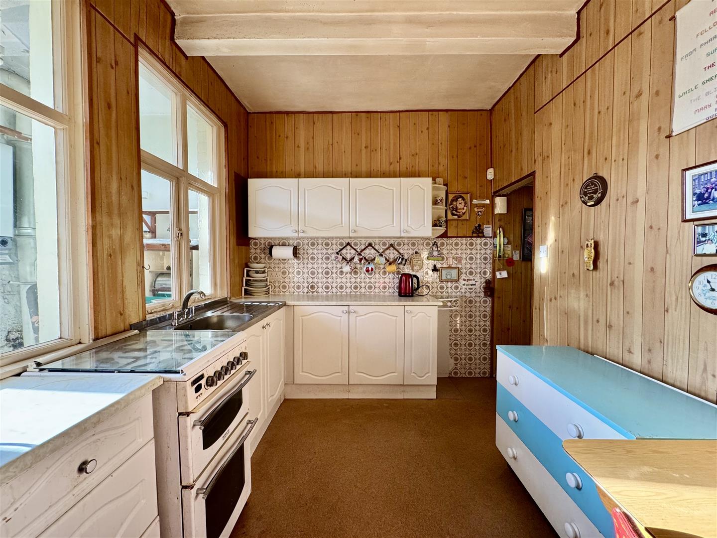 This spacious dining kitchen comprises of a range of wall and base units, complimentary work surfaces, tile splashbacks and a stainless steel sink and drainer with mixer tap over. There is space for a gas oven, a freestanding fridge freezer and ample space for a dining table and chairs. A door opens to the utility room, the cellar head and a door leads back through to the lounge.