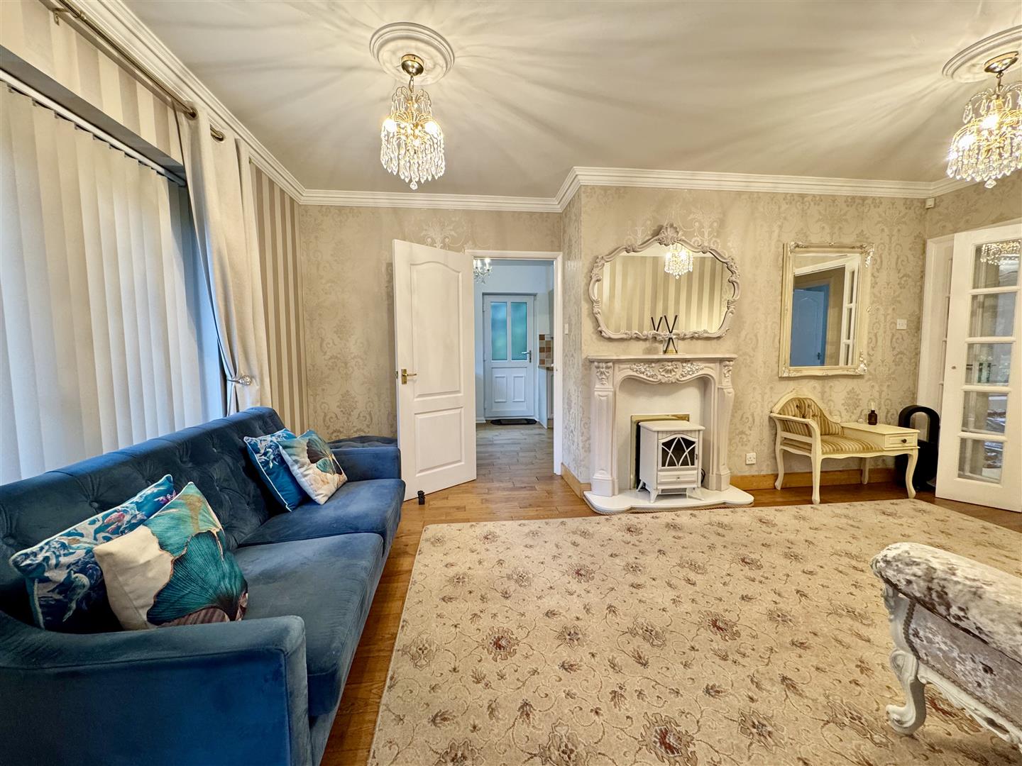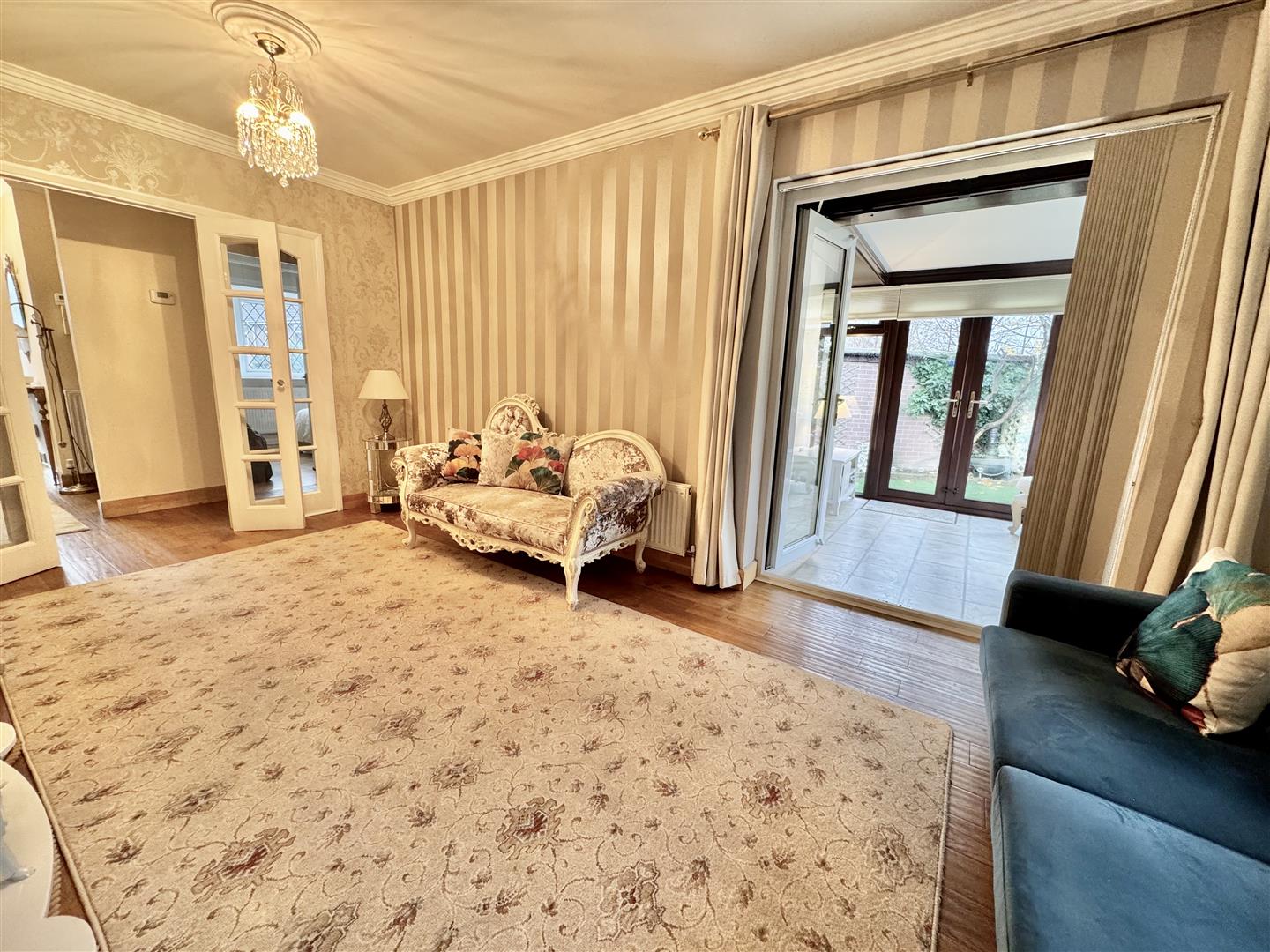 Delightful living room with beautiful decoration and bathed in natural light via the double glazed window to the rear over looking the garden and the French doors with glazed side panels which lead to the hallway. The wood flooring from the hallway flows into this room, with the focal point the ornate fireplace with marble base and back and decorative surround. There are two pendant ceiling lights, decorative cornicing to the ceiling and a wall mounted radiator. Internal doors lead to the conservatory and kitchen diner.