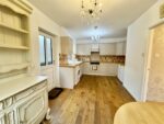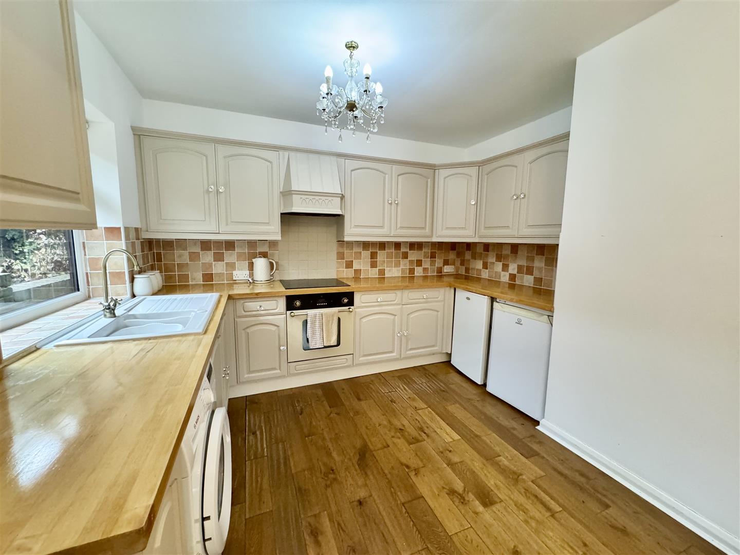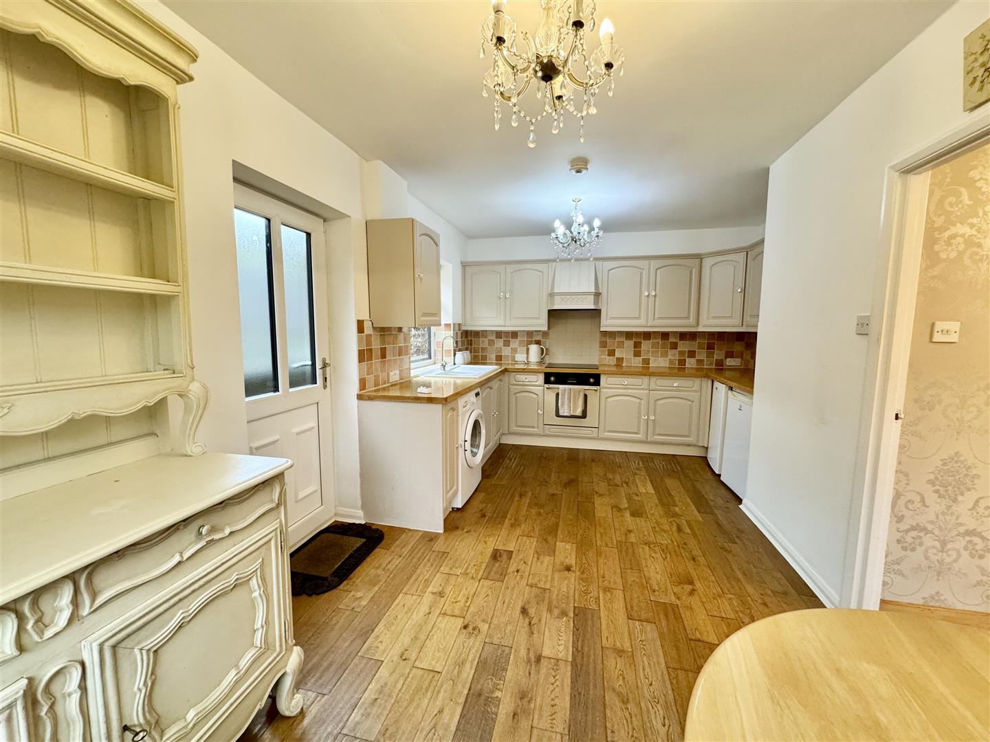 Excellent size kitchen diner having a good range of attractive wall and base units, complimentary solid wood worktops, inset ceramic one and a half bowl sink with mixer tap and tiled splashbacks. Integral appliances come in the form of an electric oven, ceramic hob with extractor hood over plus there is under counter space for a fridge and freezer, plumbing for a washing machine and space for an upright fridge freezer. The solid wood flooring that flows into the lounge continues into this room, there are two pendant light fittings and plenty of space for a dining table and chairs. A double glazed window overlooks the garden and draws in natural light, enhanced by the glazed panel in the uPVC door, which gives access to the side of the property. There is a wall mounted radiator and an internal door lead to the lounge.