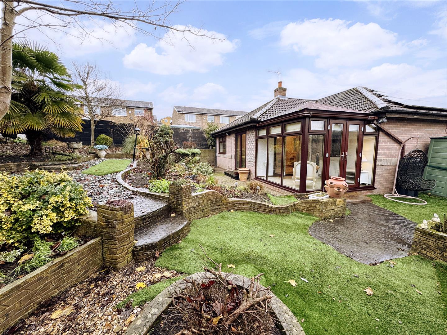 Well landscaped rear garden with areas of patio, artificial grass, a pond plus an area that would be perfect as a vegetable plot. There is a private gate leading to a footpath that takes you to Mapplewell village a a gate that leads down the side.