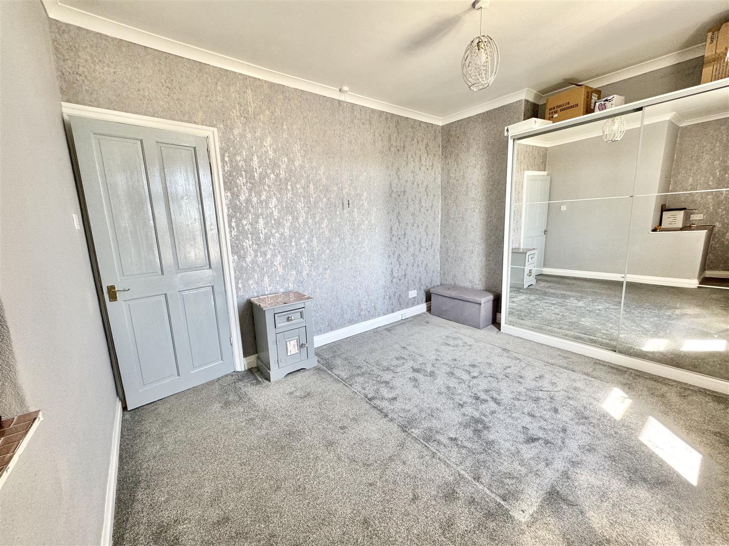 Good size double bedroom having excellent storage in the form of a triple wardrobe with sliding mirror doors in addition to the recess space. Located at the front of the property with double glazed window bringing in plenty of natural light, there is carpet flooring, a double radiator and coving to the ceiling. An internal door leads to the landing.