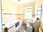 Having a three piece in white consisting of a panel bath with mixer tap, pedestal wash basin and twin flush low level WC. There is neutral tiling to splash areas, a single radiator, vinyl flooring andn a double glazed window with obscure glass. An internal door leads to the landing.