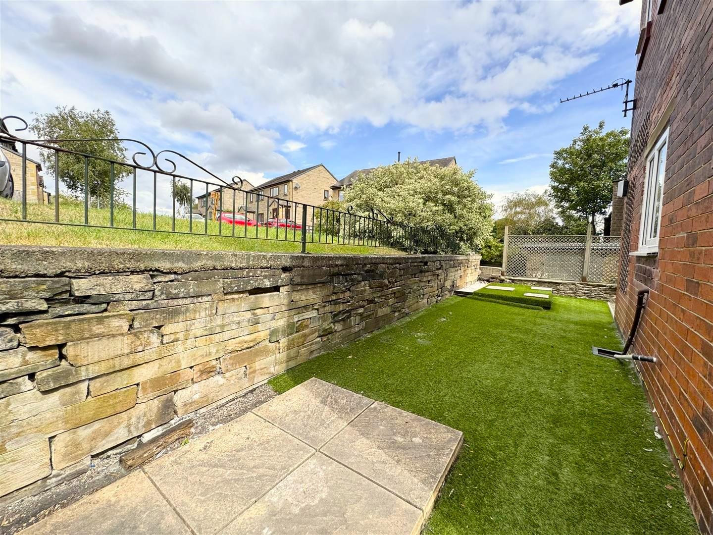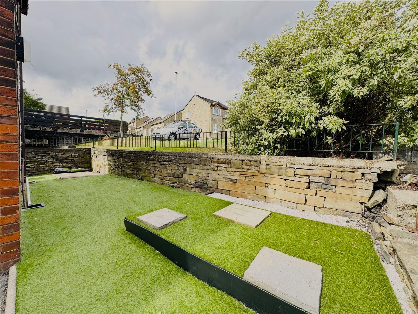 To the rear of the property there is a low maintenance garden area with artificial turf and a paved path leading round the side of the property to the front garden. There is a garden shed for storage.