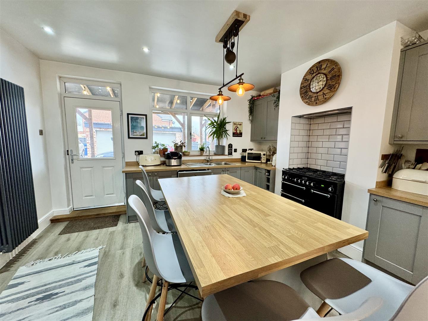 Exceptional breakfast kitchen, situated at the rear of the property with the double glazed window drawing in natural light. The kitchen itself has an excellent range of wall and base units in a grey finish, complimentary wood effect worktops, matching splashbacks and one and a half bowl stainless steel sink with mixer tap. Integral appliances include a dishwasher and there is the fabulous Rangemaster range style cooker with extractor over, plus there is space for a fridge freezer and plumbing for a washing machine. The breakfast bar adds convenience and elegance to the space and has storage as well as seating spaces. There is an upright designer radiator, the space is open to the living area and there is a barn style sliding door leading to the utility room. A double glazed external door leads to the rear patio.