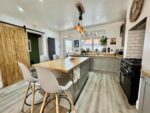 Superb use of this space, split into two areas, a utility space with plumbing for a washing machine engineered wood flooring which continues into the other space which has a unique combination WC and wash basin which has a mixer tap, there is a double glazed window with obscure glass, inset ceiling spotlights and the boiler is located here too. The barn style sliding door leads to the kitchen.