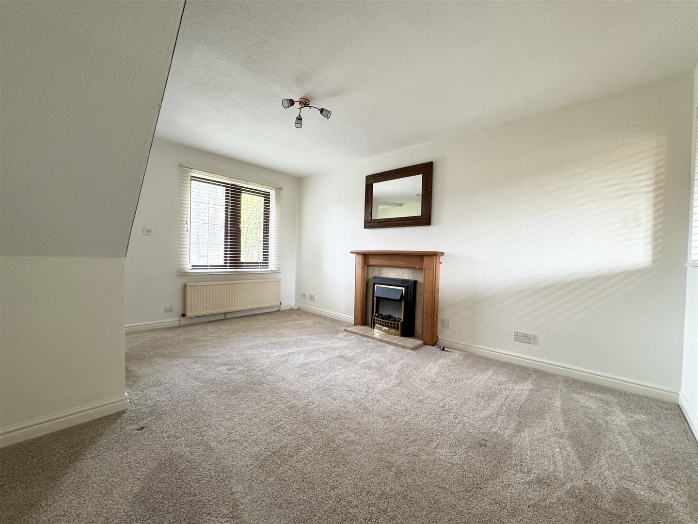 This good sized room is nicely presented in neutral tones with carpet continuing from the entrance hall and a window overlooks the front of the property. Having an electric fire with an attractive wood surround and tiled hearth, there is ample room for free standing furniture. There is a window sized opening, fitted with a blind, which looks through to the kitchen allowing further natural light into the room and a door leads into the kitchen.