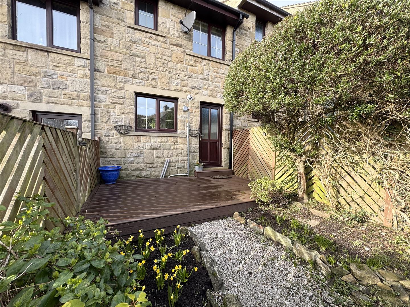 To the rear of the property is a fully enclosed, private garden with well planted borders and boundary fencing. Having a fantastic decked seating area, stepping stones form a path across the grass to the end of the garden where there is a paved seating area and a gate provides access to a communal footpath giving a useful alternative access to the back garden.