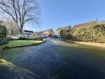 At the front of the property is a well maintained lawn garden with flower bed and hedging borders and a sweeping driveway with EV charger and parking for multiple vehicles.
