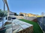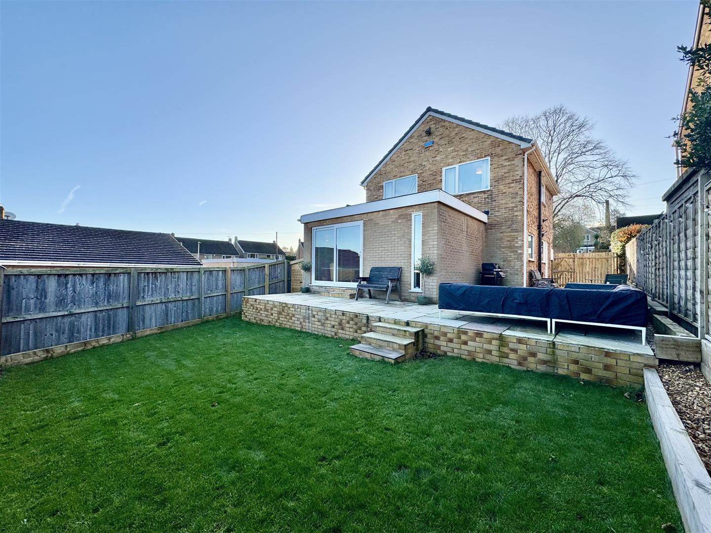 Accessed through a timber gate from the driveway, the kitchen and sliding patio doors directly from the open plan living dining room creating an indoor / outdoor flow onto a raised wrap around Indian Sandstone Patio perfect for outdoor dining, entertaining and allowing ample room for garden furniture. This recently and beautifully landscaped garden also has a good size lawn and a timber outbuilding. The garden is fully enclosed by newly fitted timber fencing and decorative raised planters.
