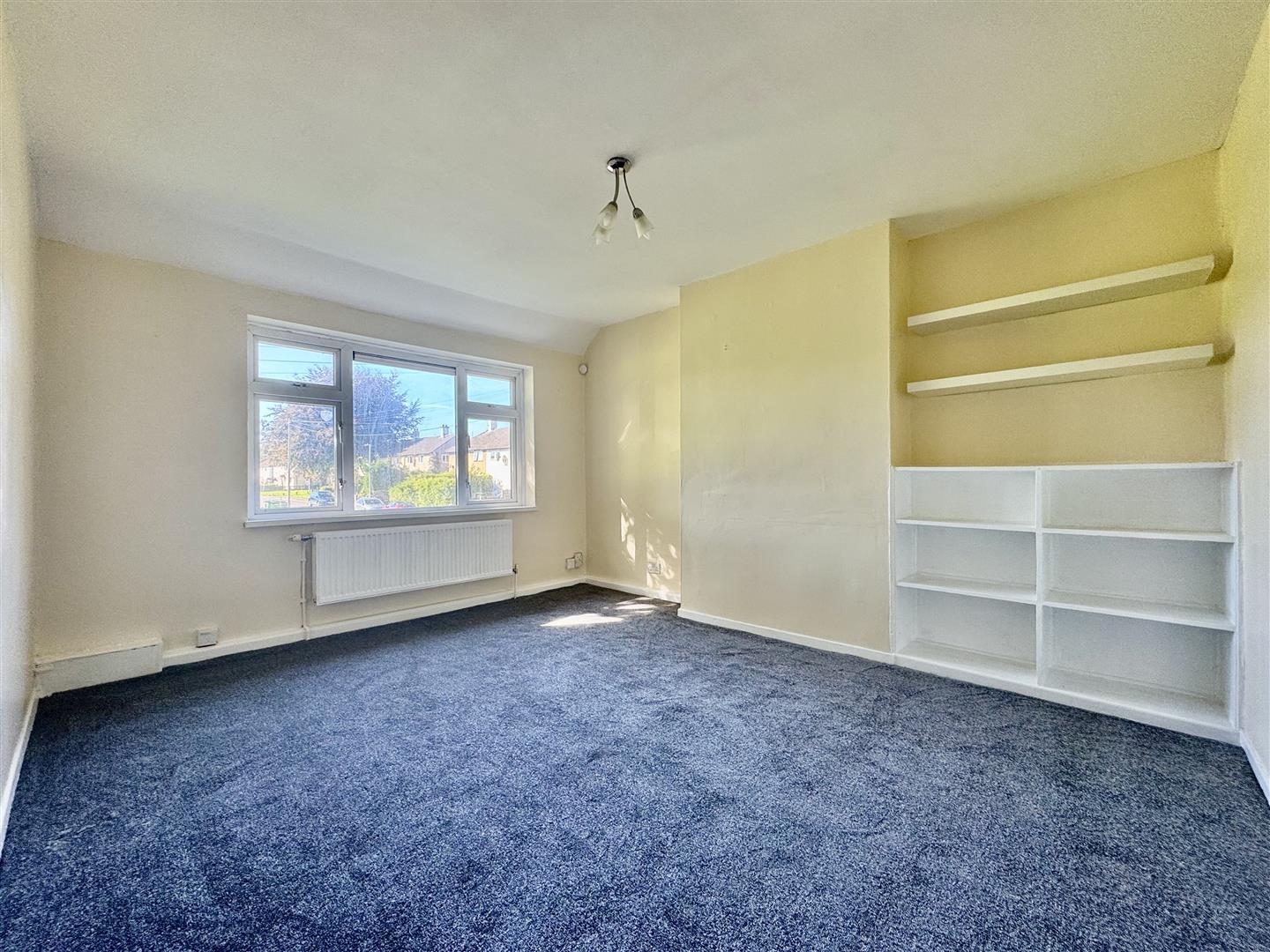 This bright and spacious reception room has ample room for free standing furniture and a large front facing window which gives a pleasant outlook over the front lawn, street scene and open space beyond. There are alcoves to either side of the fireplace with one side having shelving and storage and a door leads through to the landing.
