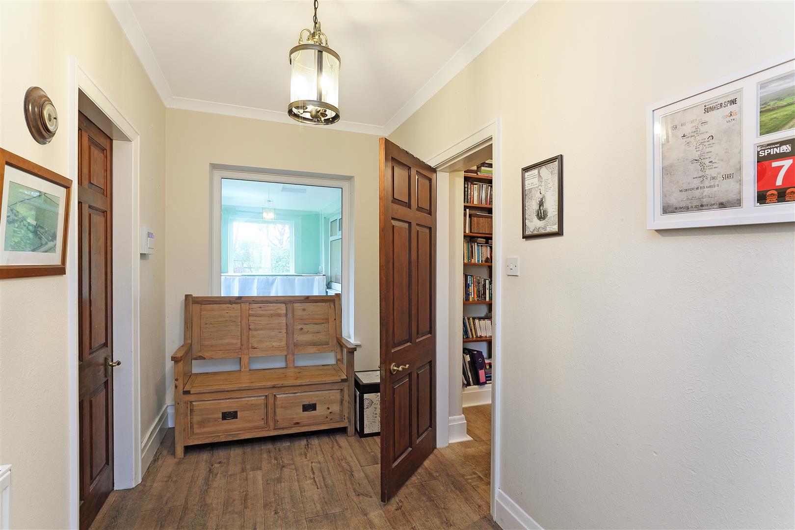 The hallway has wood effect vinyl underfoot and doors leading to the entrance hallway, dining kitchen, dining room and shower room.