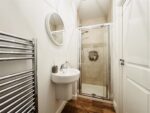 This excellent en-suite is fitted with a three piece white suite including a glazed shower cubicle, wall mounted hand wash basin and low level W.C. There is a heated towel rail, vinyl flooring and attractive tiles to the shower. A door leads to bedroom two.
