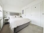 This generously sized double bedroom has ample space for free standing furniture and is filled with natural light courtesy of the two front facing windows. There is a useful cupboard which houses the hot water tank along with a bank of fitted wardrobes to one wall. Doors lead to the landing and en-suite.