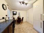 Spanning the full rear width of the property and fitted with a comprehensive range of contemporary two tone high gloss wall and base cupboard units with contrasting granite effect worktops and block tiled splashbacks, inset single drainer sink unit integrated electric oven, four plate induction hob with stainless steel extractor hood over, integrated fridge, freezer and dishwasher with plumbing for washing machine, ample space for dining table, double glazed window to the rear elevation and double doors leading to conservatory.
