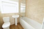 Fitted with a stylish three piece white suite including a bath with shower over and glazed screen, low level WC and pedestal hand wash basin with mixer tap over. The room is mostly tiled with attractive neutral tiles, there is complimentary laminate flooring and a rear facing obscure glazed window floods the room with light. A door leads to the landing.
