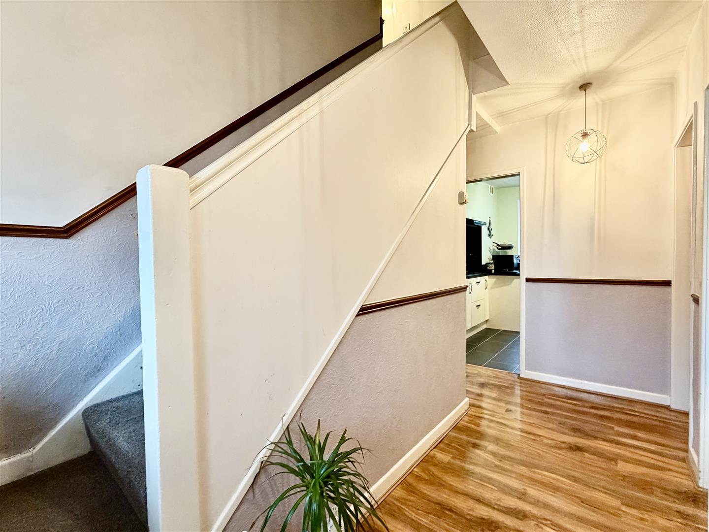 Affording a welcoming daily entrance through a Upvc double glazed door and leading into a bright and spacious hall having modern wood effect flooring underfoot, recessed spotlights to the ceiling, internal door to garage, door through to ground floor accommodation and being open to Utility.