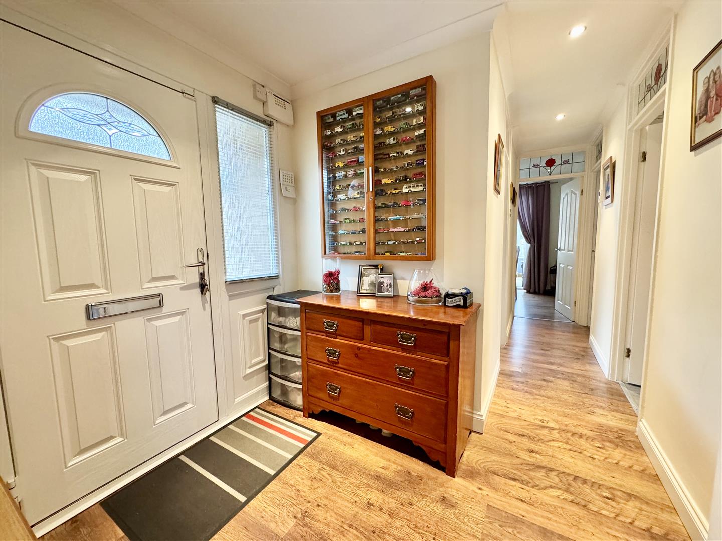 You enter the property through a composite front door into this welcoming, light and airy space, with plenty of room to remove coats and shoes. This 'L' shaped hallway has laminate flooring, a wall mounted radiator, inset ceiling spotlights and coving to the ceiling. Internal doors lead to the lounge, kitchen, bathroom and all the bedrooms.
