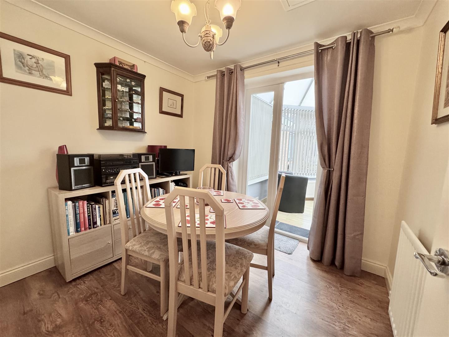 Third well proportioned bedrooms, currently used as a dining space but having lots of potential uses. Situated at the rear of the property and having French doors leading the conservatory, there is plenty of space for free standing bedroom furniture, laminate flooring, a wall mounted radiator, coving ot the ceiling and access to the loft. An internal door leads to the landing.