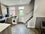 This lovely kitchen has been fitted with grey wood effect wall and base units, gorgeous quartz work surfaces with upstands and splashbacks, a one and a half bowl composite sink and drainer with a mixer tap over. Integrated appliances include an electric oven, four ring electric hob with stainless steel extractor fan above, a fridge freezer and washer dryer. To one side of the kitchen where there is space to accommodate a small table and chairs and a cupboard allows for useful storage of household items. The room has a rear facing window, has been neutrally decorated and there are contrasting vinyl tiles to the floor. There is a wall mounted radiator, doors lead to the lounge and rear garden and stairs ascend to the first floor landing.