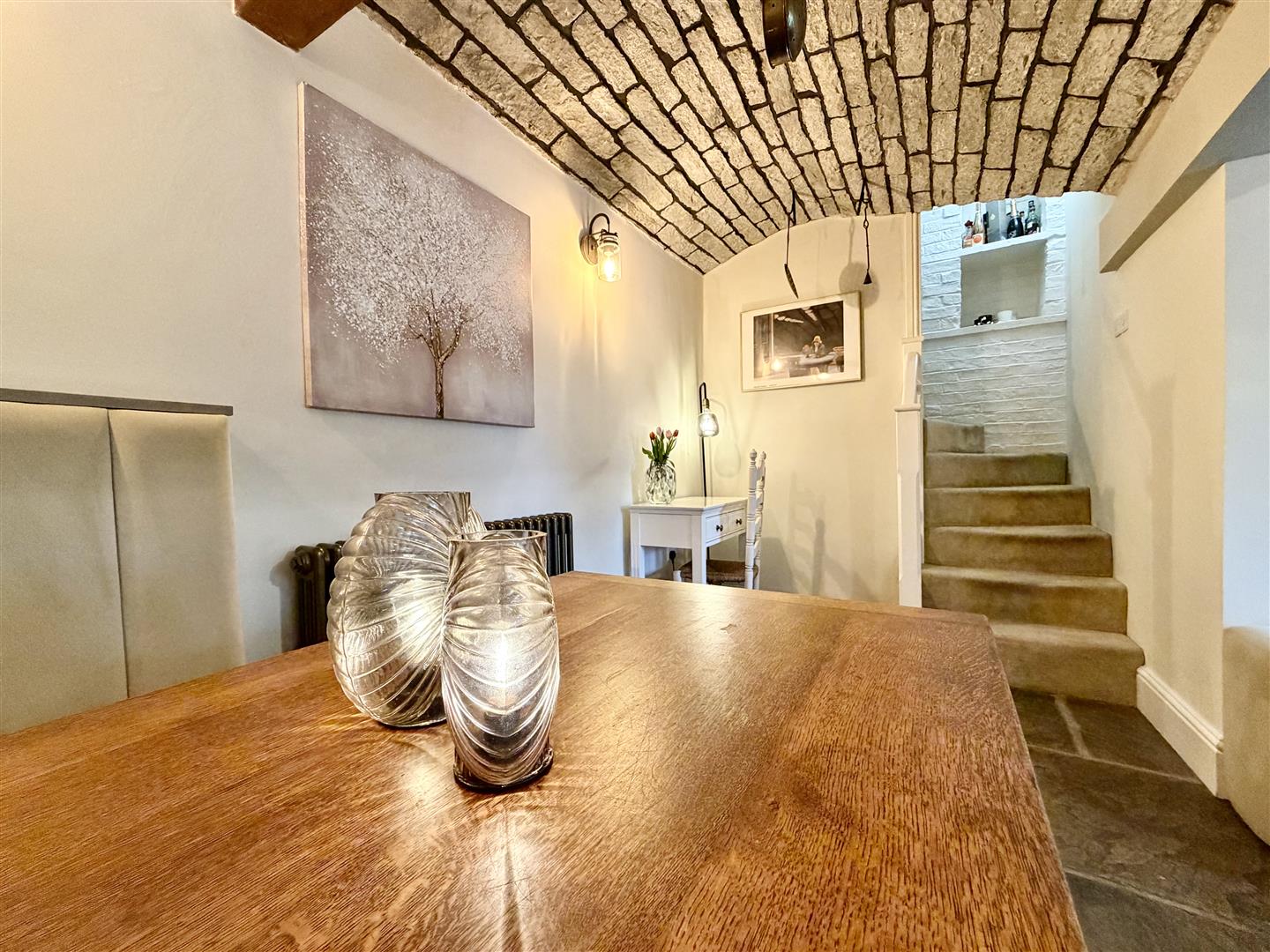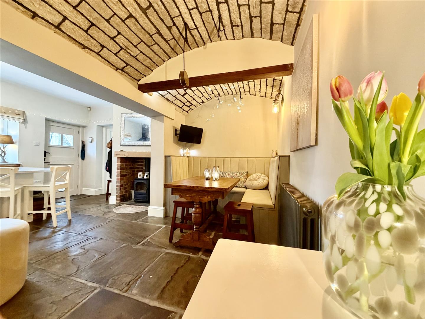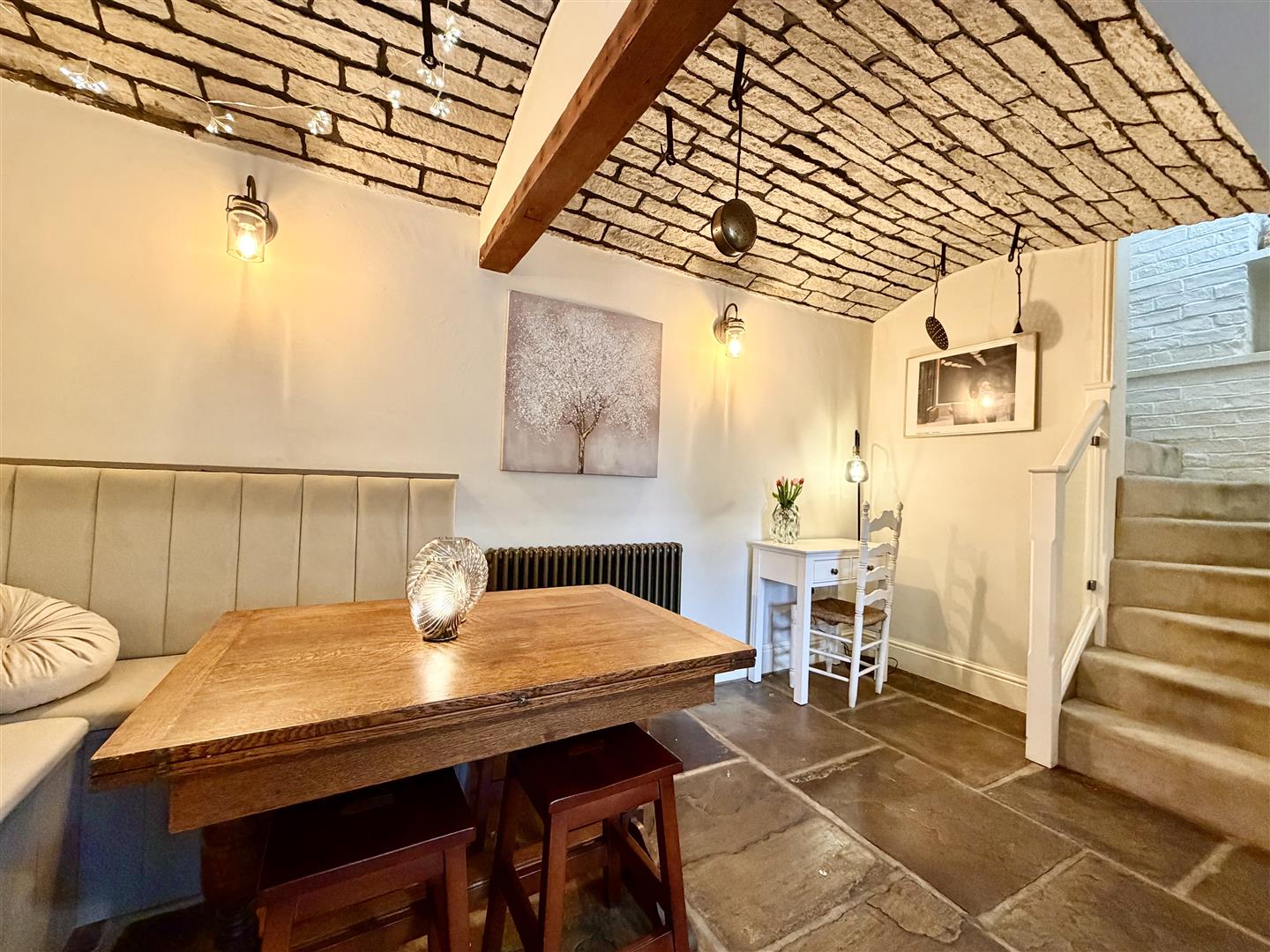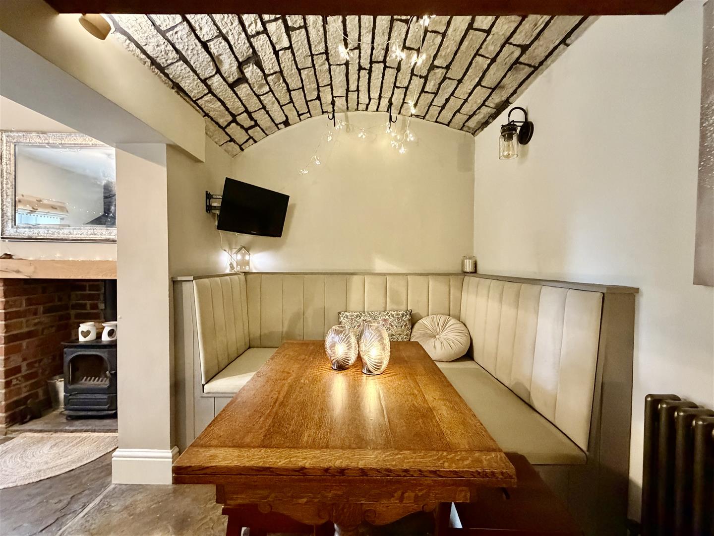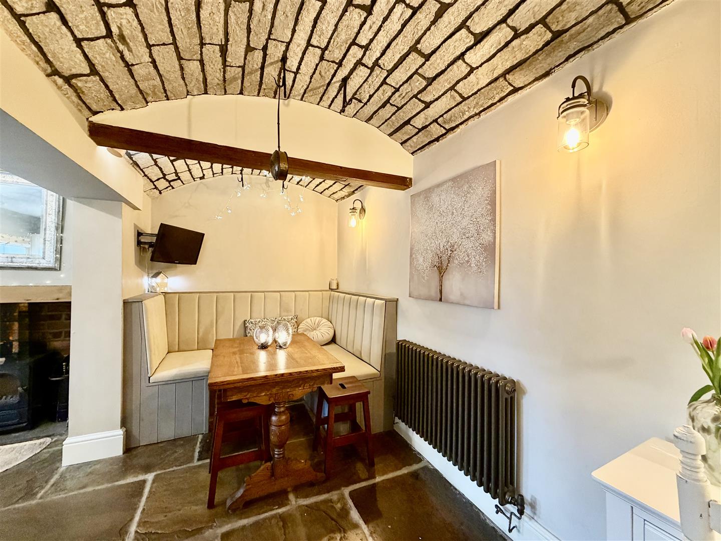 A charming and most atmospheric space currently used as a dining room, ideal for entertaining but equally at home as an additional snug positioned to the rear of the kitchen having a feature barrel vaulted ceiling with exposed beams, attractive stone flagged flooring, fitted horse shoe bench seating with hidden storage and opening to the kitchen.