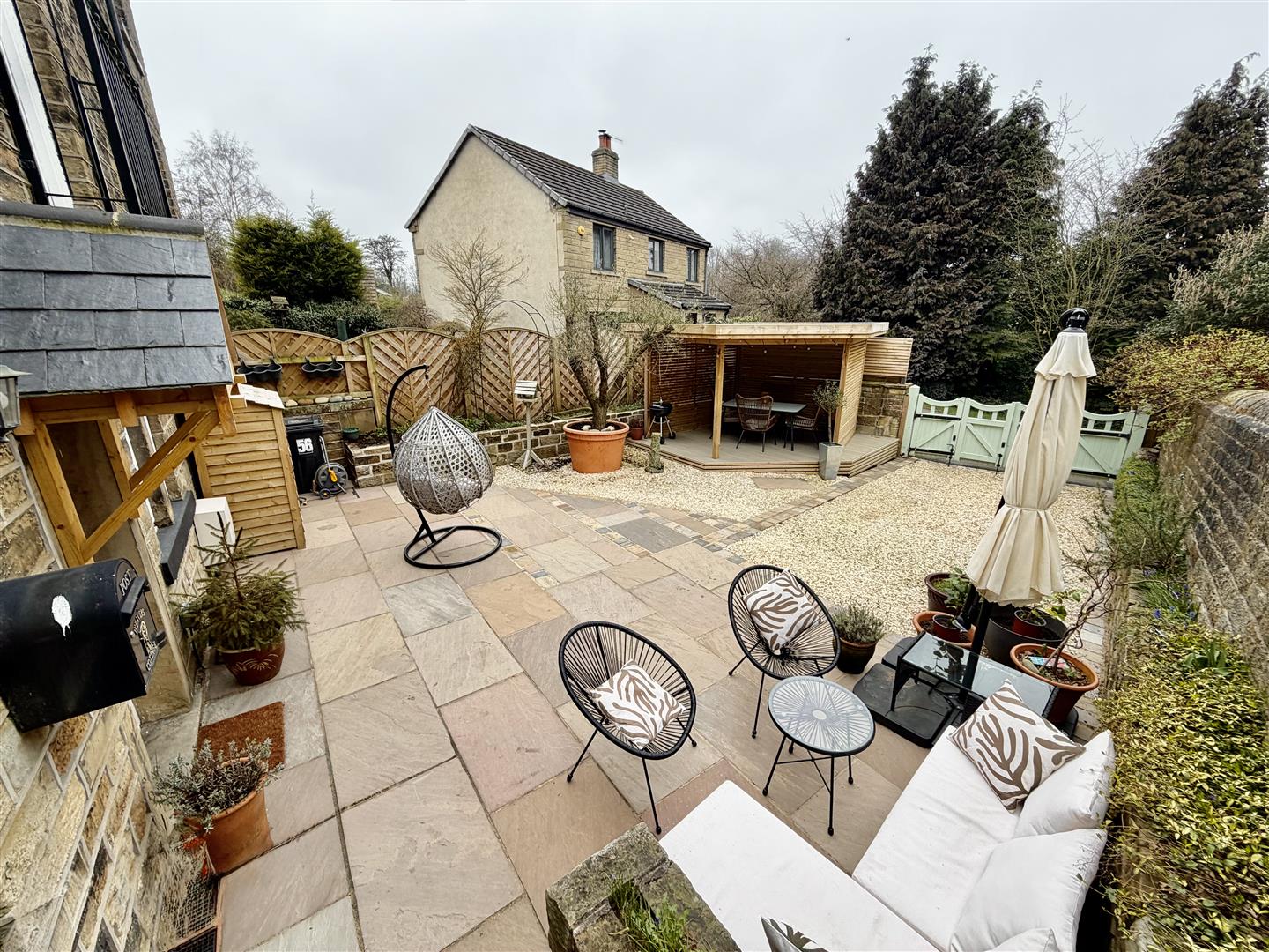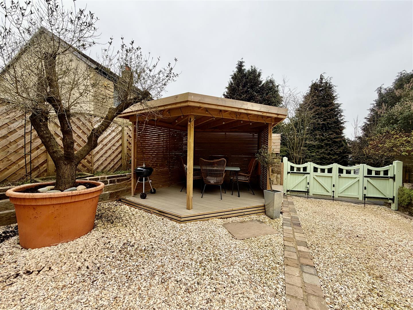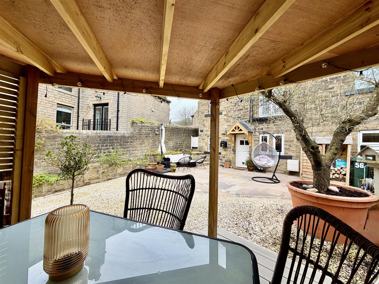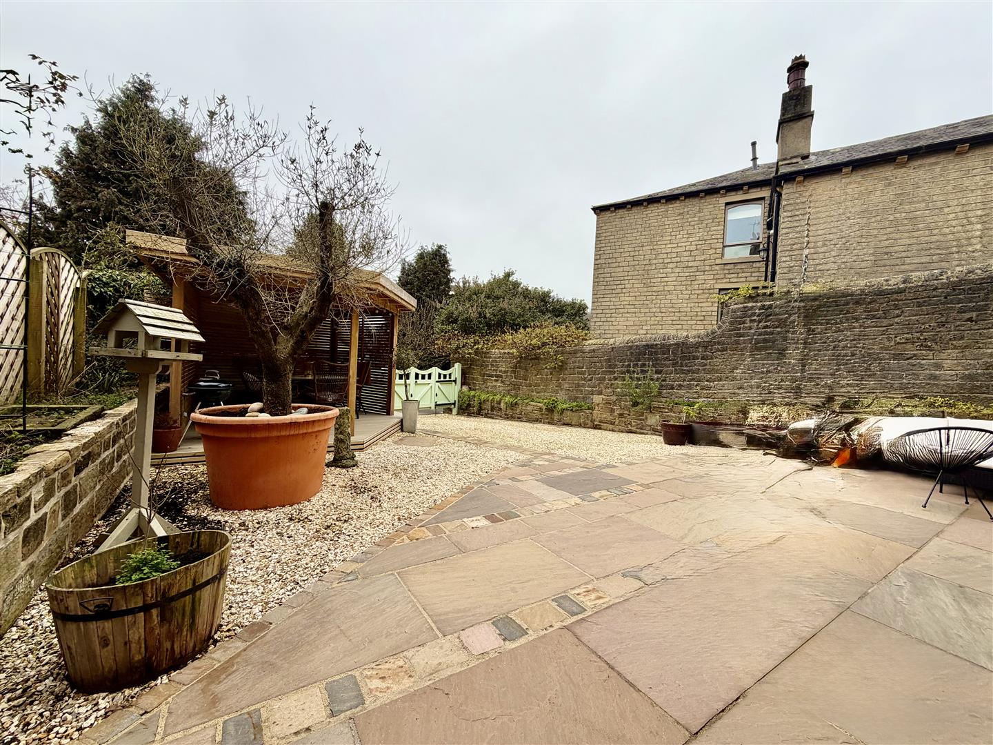 Approached from Hall Ing Lane, leading to an attractive timber multi-gate with additional pedestrian gate leading to a generous gravelled area providing private off street parking and further attractively landscaped gardens, designed for low maintenance which includes laid Indian stone paving with generous space for outside seating, raised flower beds along stone boundary wall, outside tap, power socket and log store with further feature timber framed gazebo providing an ideal sheltered outside dining and entertaining space.